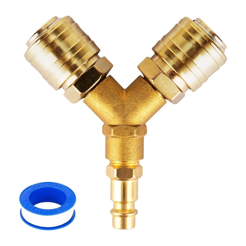 Y Splitters 1/4Inch Air Hose Quick Coupler Compressed Air Distributors 2 Way Air Switches Connectors Pneumatic Tees Joint