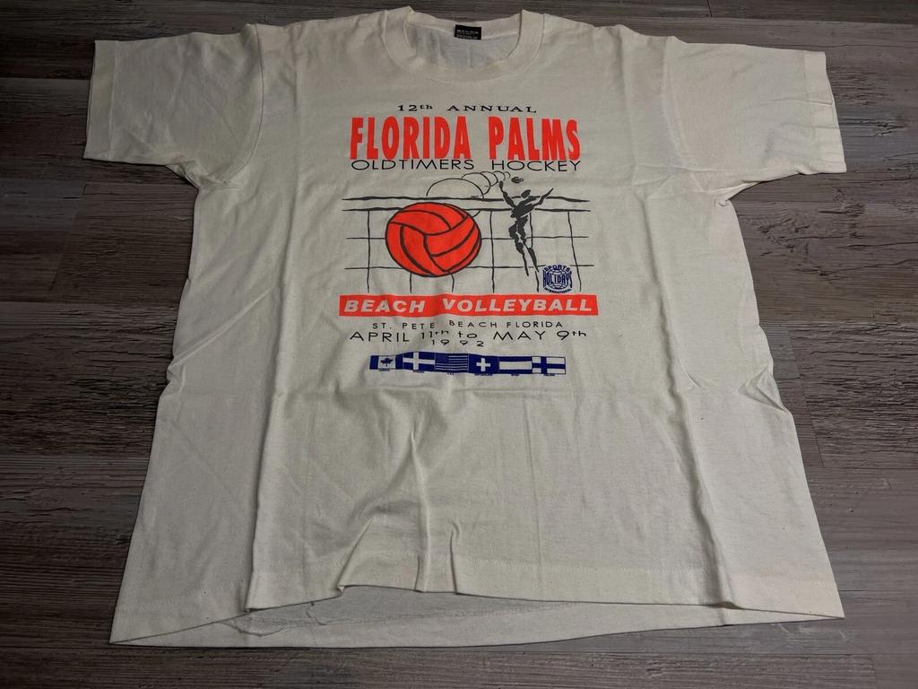 Vintage Beach Volleyball T-Shirt Large 90s Single Stitch Florida Palms Sz XL US