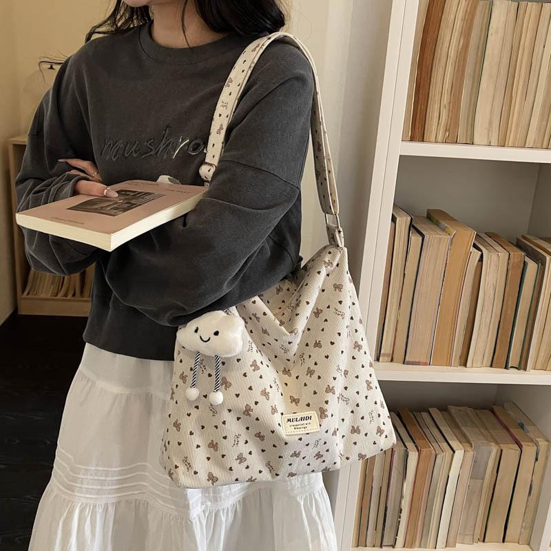 Cute bow canvas tote bag women's leisure large capacity shoulder bag student commuter messenger bag