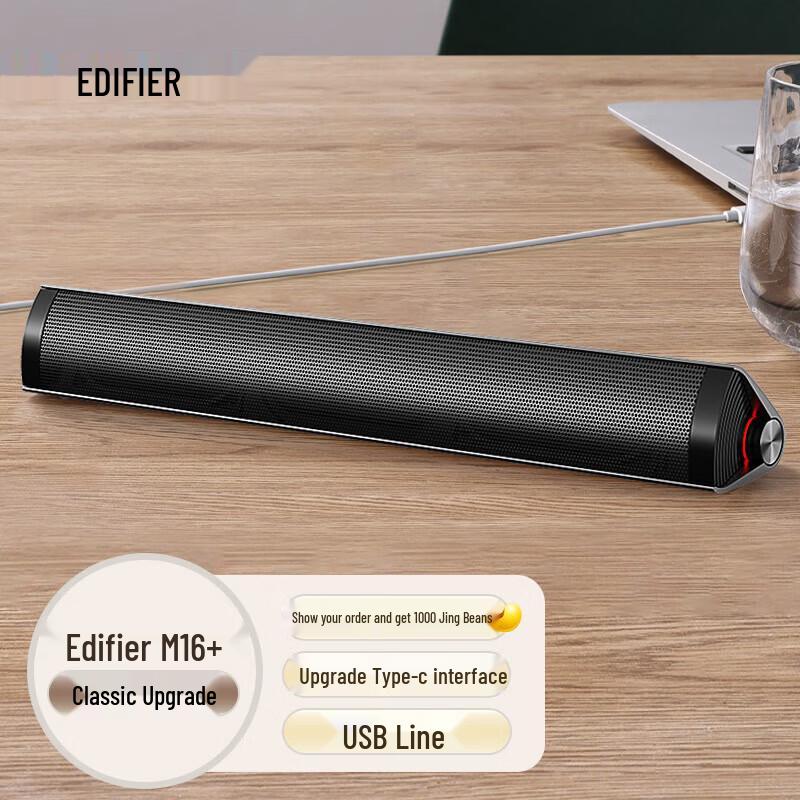 Experience high-fidelity audio with the EDIFIER M16+ Desktop Portable Speaker. Designed for both desktop and computer use, it features a built-in USB sound card and a convenient Type-C interface. Crafted with an aluminum alloy main body, it delivers crisp sound in a portable design. CN plug (adapter included)