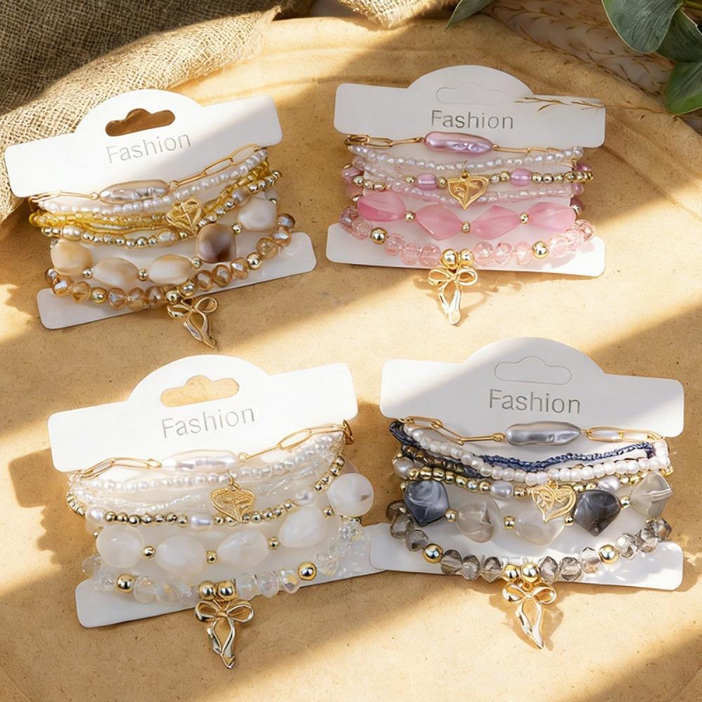 Multi-layer Design Boho Bracelet Imitation Pearl Beaded Chain Bangle Strand Bracelet Women Jewelry