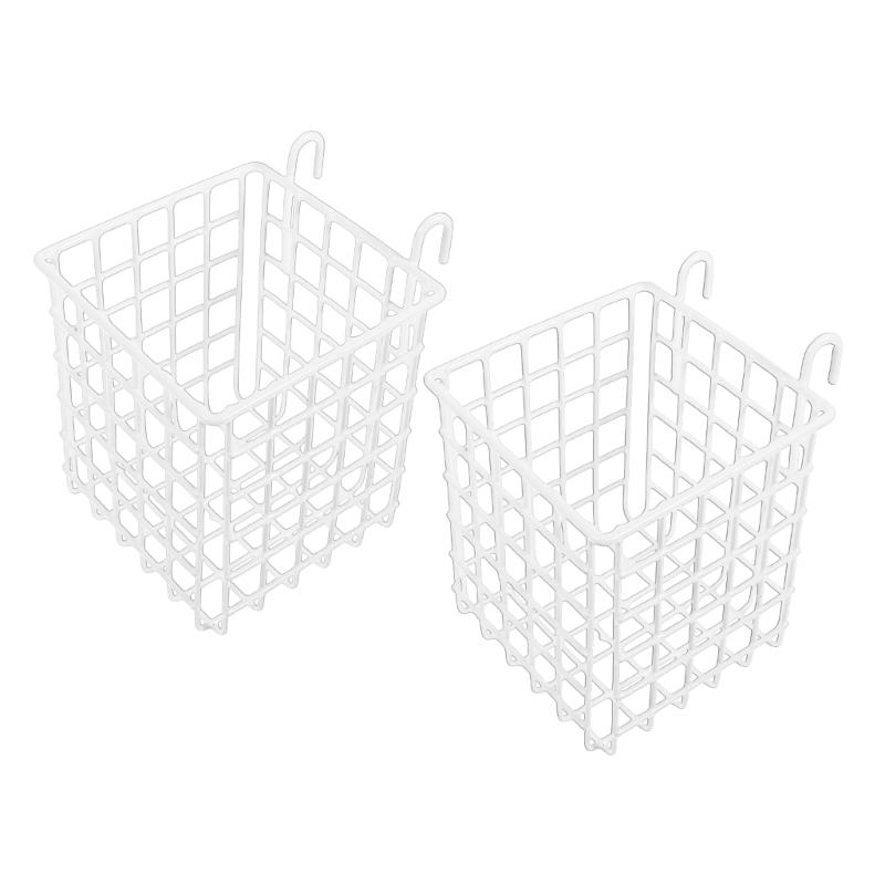 Pack of 2 White Iron Wire Storage Baskets With Double Hook For Versatile Home Organization In Kitchen Bathroom Office