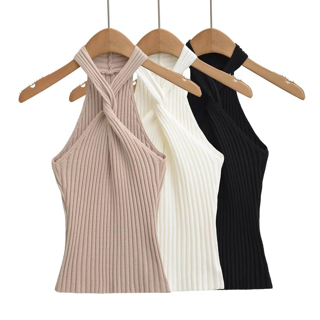 Elegant Off-the-Shoulder Halter Knit Vest - Women's Slimming Sexy Style