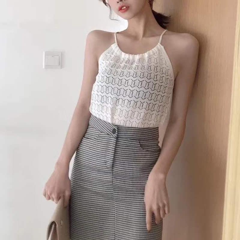 Spring Retro Hong Kong Style Drawstring Slimming Camisole Tank Top for Women