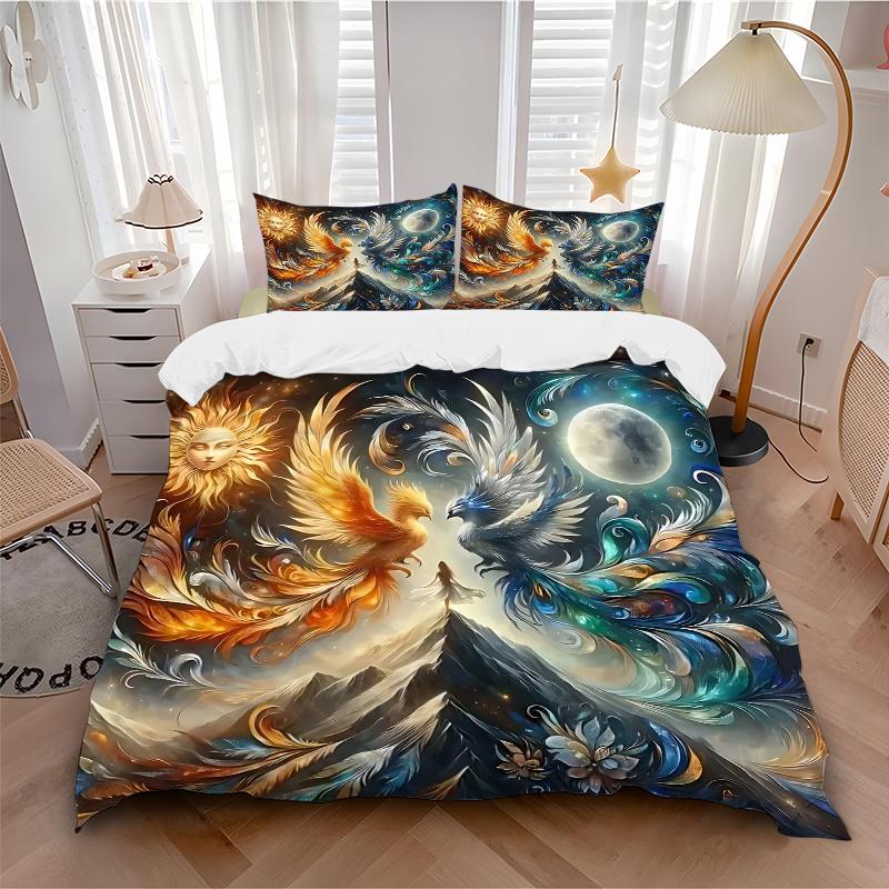 3pcs Anime Phoenix Comforter Set with Two Pillowcases (No Core), Home Decor, Festival Gift, Polyester Fabric