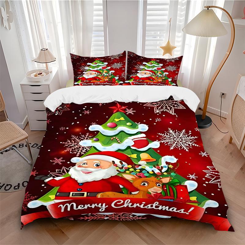 3pcs Merry Christmas! Santa Claus & Reindeer Bedding Set, Includes 1 Quilt Cover and 2 Pillowcases (No Core), Festive Gift for Bedroom