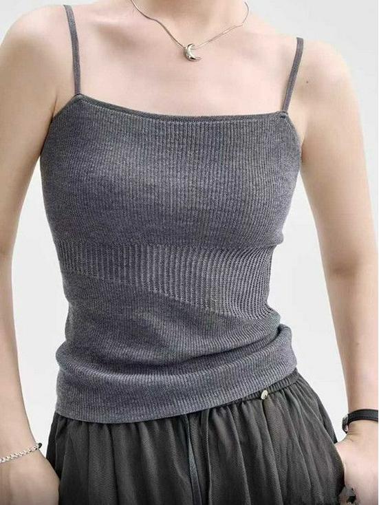 Korean Style Slim Fit Knit Camisole Vest - Women's Summer Solid Color Base Layer Top