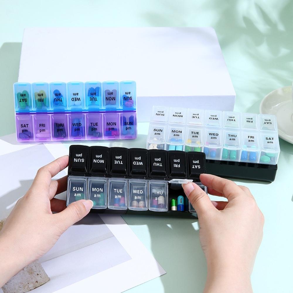 New Hot Premuim Portable Large Weekly Pill Box Organizer Cases 7 Day 14 Grids Storage for Medicine Vitamin Supplements Fish Oils
