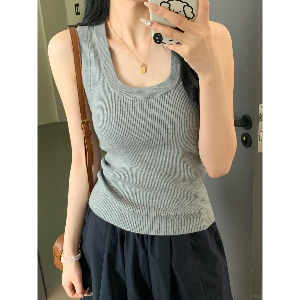 French Chic U-Neck Knitted Camisole Top