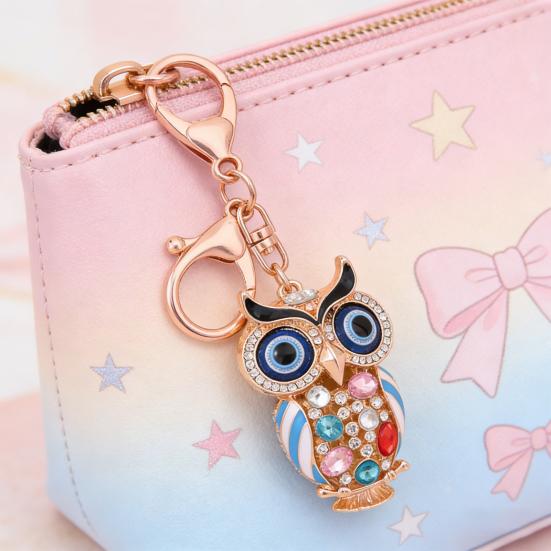 Owl Keychain with Enamel Accents Sparkling Rhinestone Car Key Ring for Women Wisdom Symbol Pendant for Bags Keys