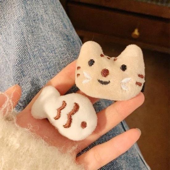 4Pcs Girl Hairpin Mini Plush Kitty Fish Design Secure Hold Hair Clip Side Bang Hair Pin Healing Style Hair Accessory