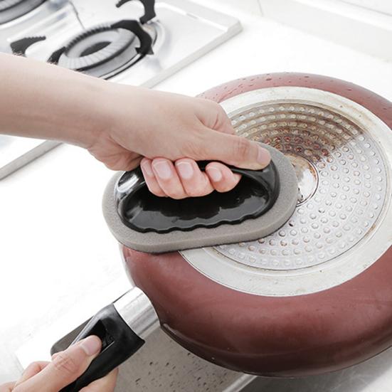 This durable cleaning brush features a high-density sponge body with a wear-resistant outer layer, offering excellent heat and corrosion resistance for long-lasting use. Its unique oval sponge design with fine surface texture effectively penetrates uneven pot surfaces to remove stubborn stains and burnt residue effortlessly.