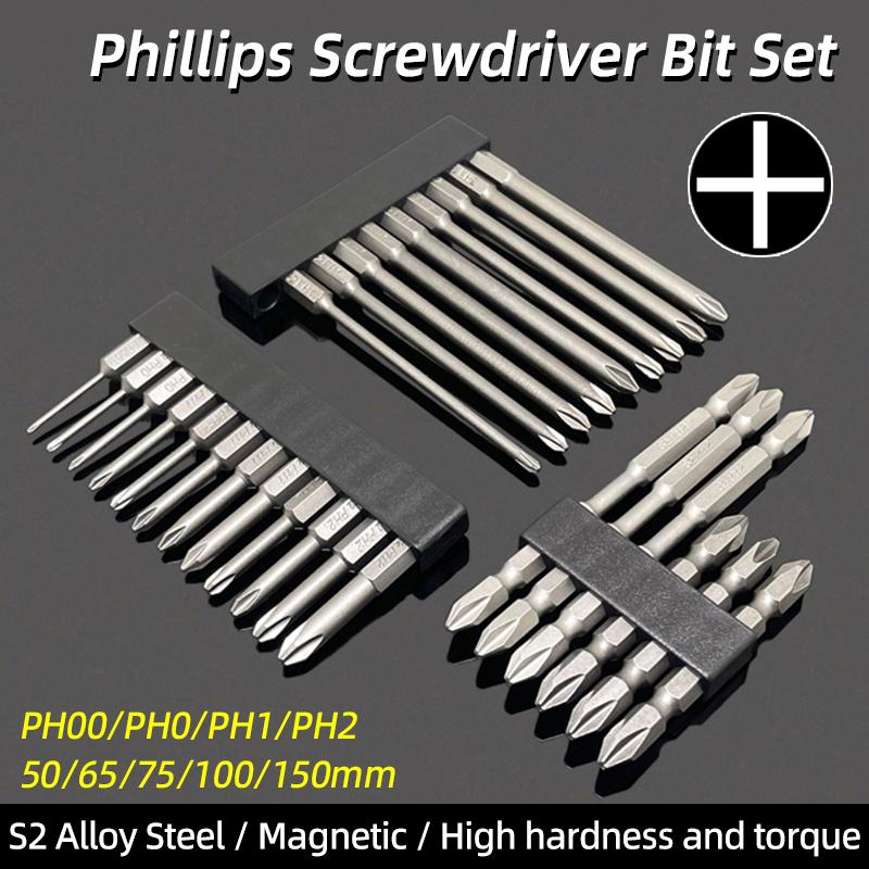 Phillips Screwdrivers Bits Cross Head Magnetic Screwdrivers PH00 PH1 PH2 S2 Hex Shank Hand Tools 50/75/100/150/200/300mm