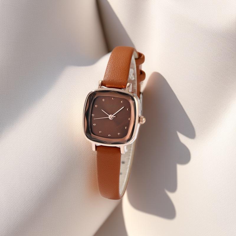 Retro Small Square Dial Student Watch Women'S Simple Style Small Dial Belt Watch Quartz Watch