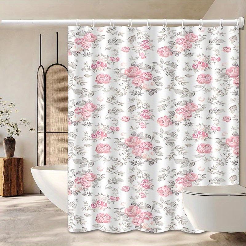 1pc with hook, beautiful and simple floral pattern printed shower curtain, high-end and elegant, machine-washable, suitable fo