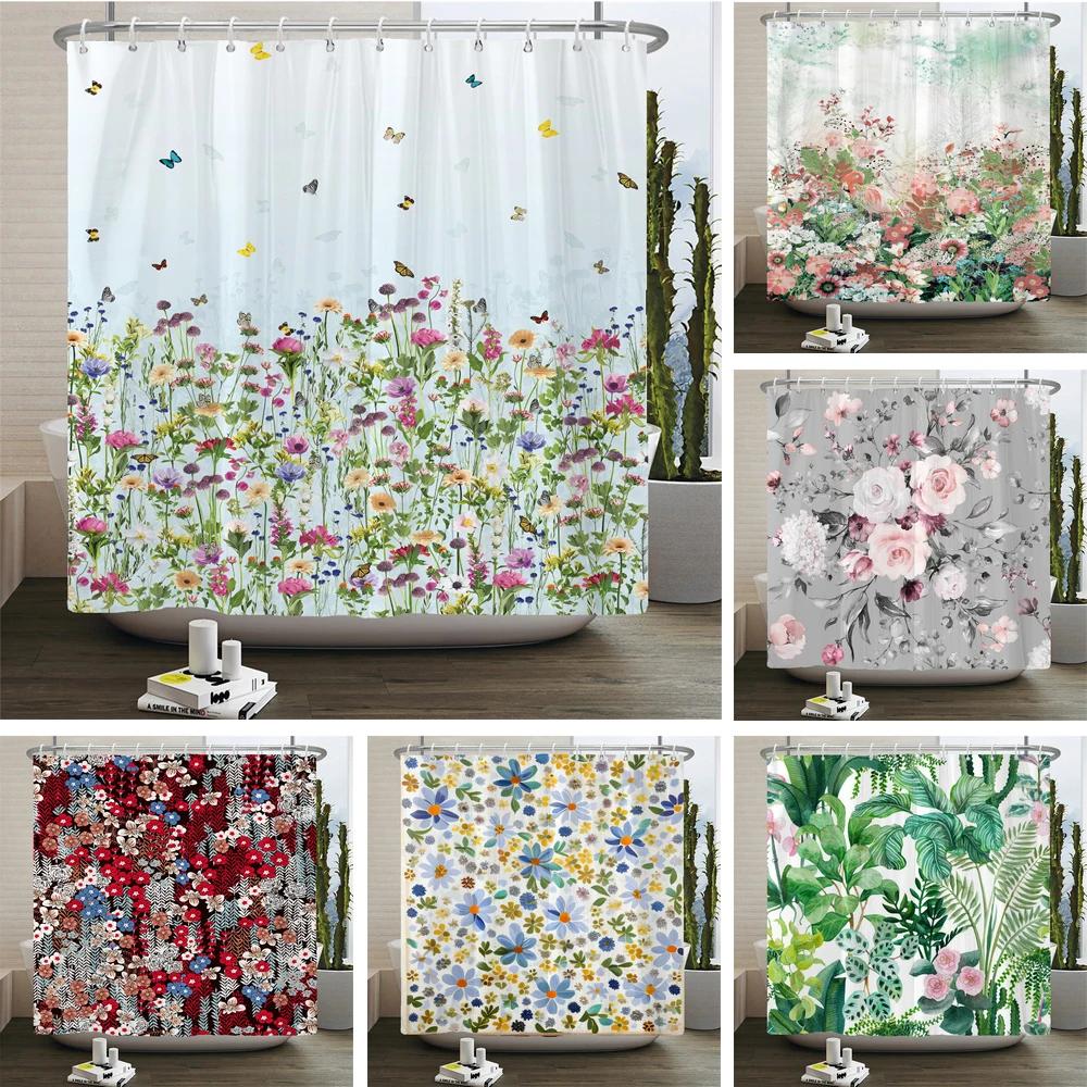 Elegant Flowers Shower Curtain 180x180cm Floral Shower Curtain Polyester Bath Curtain Bathroom Decor Machine Washable With Hooks