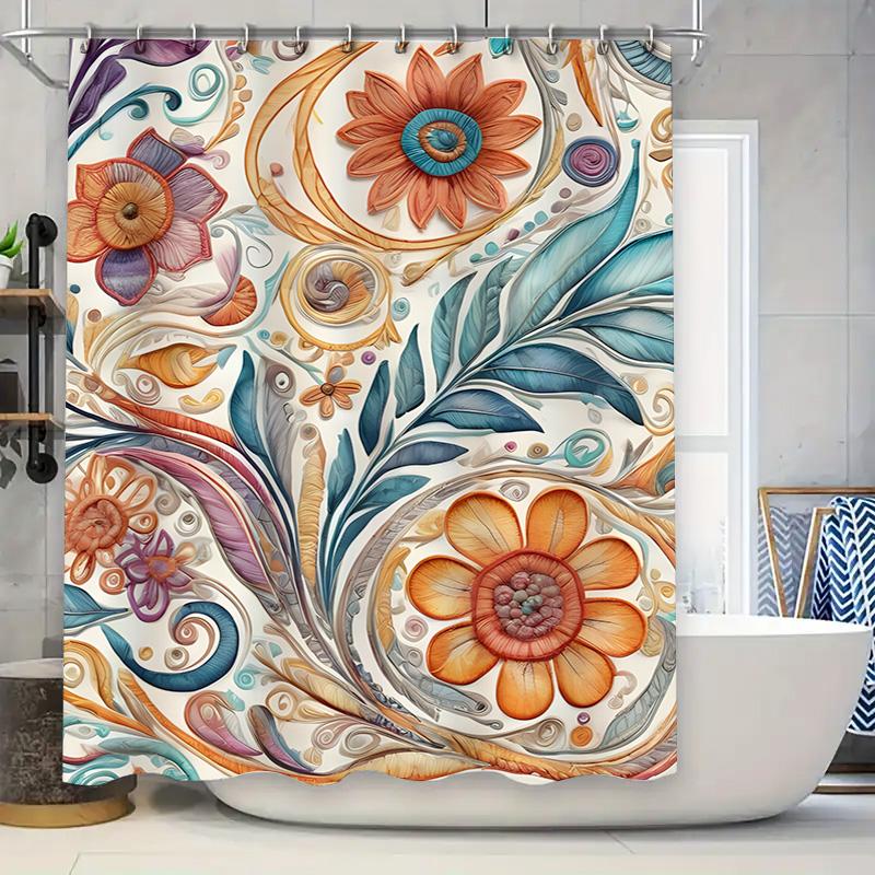 סט וילון מקלחת פרחוני צבעוני מודפס פוליאסטר עמיד במים קישוט אמבטיה לבית סלון 72 x 84 אינץ' כולל ווים