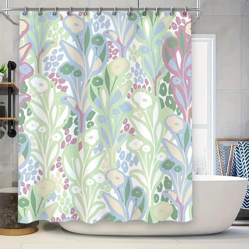 Colorful floral shower curtain decorative bathroom decor waterproof fabric for bathtub enclosure Mint Green Pink Blue White Larg