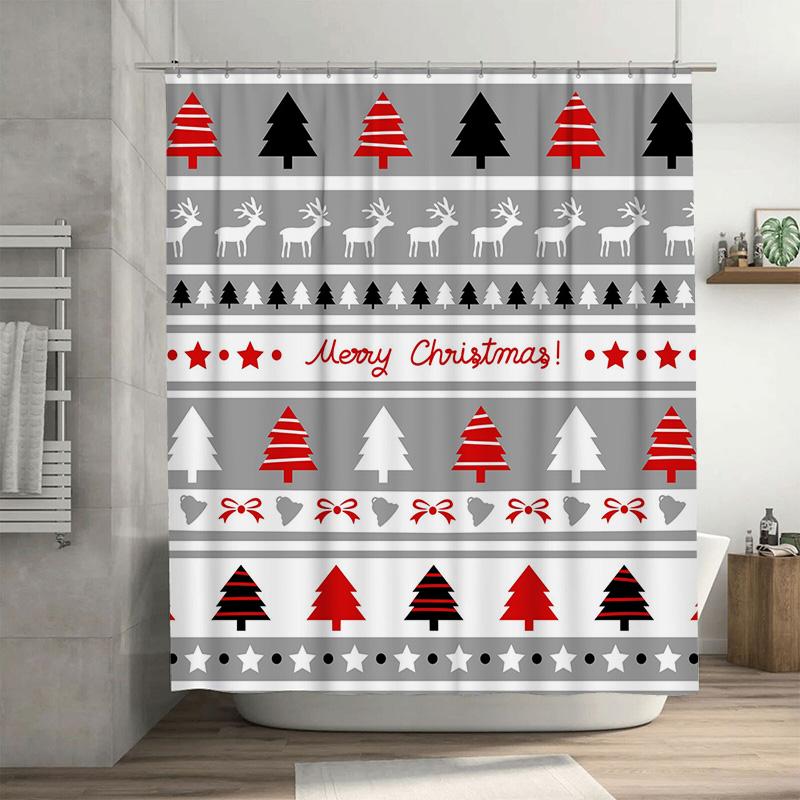 TU Christmas Shower Curtain Festive Holiday Bathroom Decor Reversible Waterproof Modern Farmhouse Xmas Pattern Backdrop