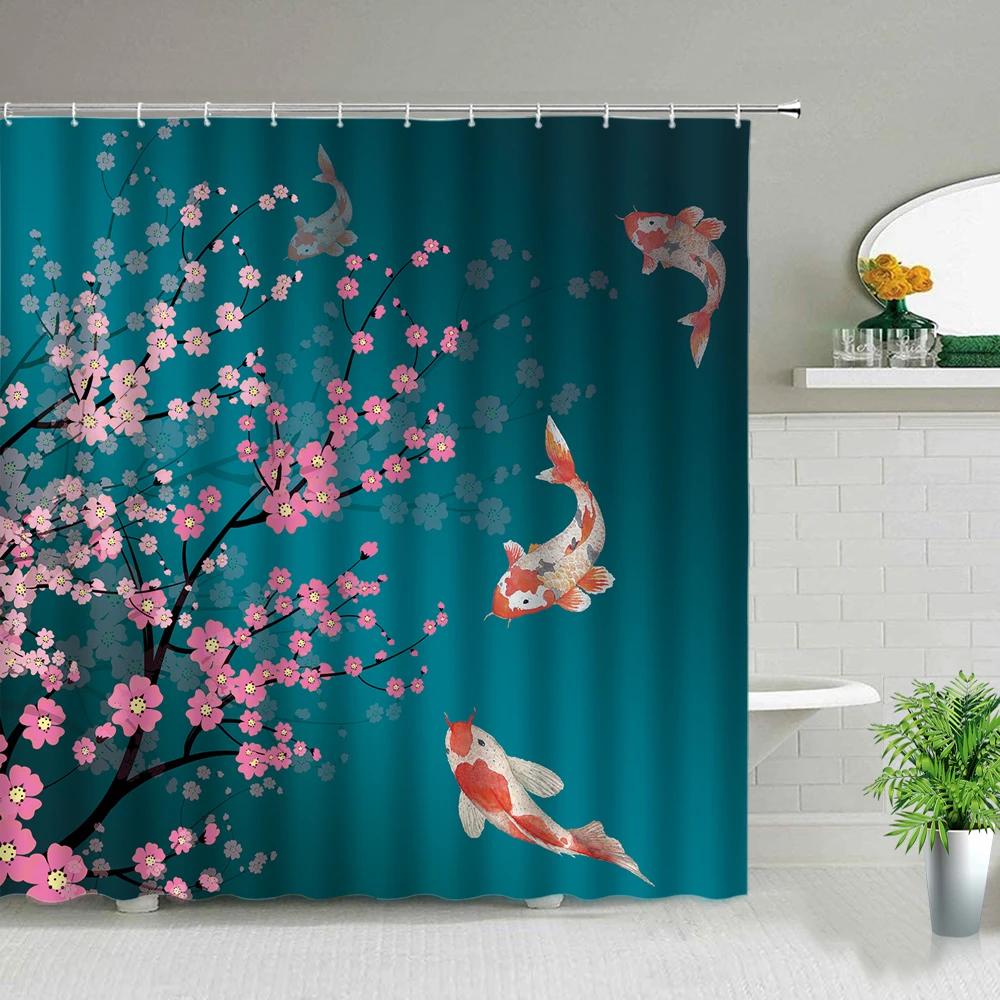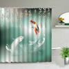 Modern Chinese Style Koi Fish Scenery Shower Curtain Bathroom Screen Waterproof Fabric Background Wall Decor Hanging Curtains