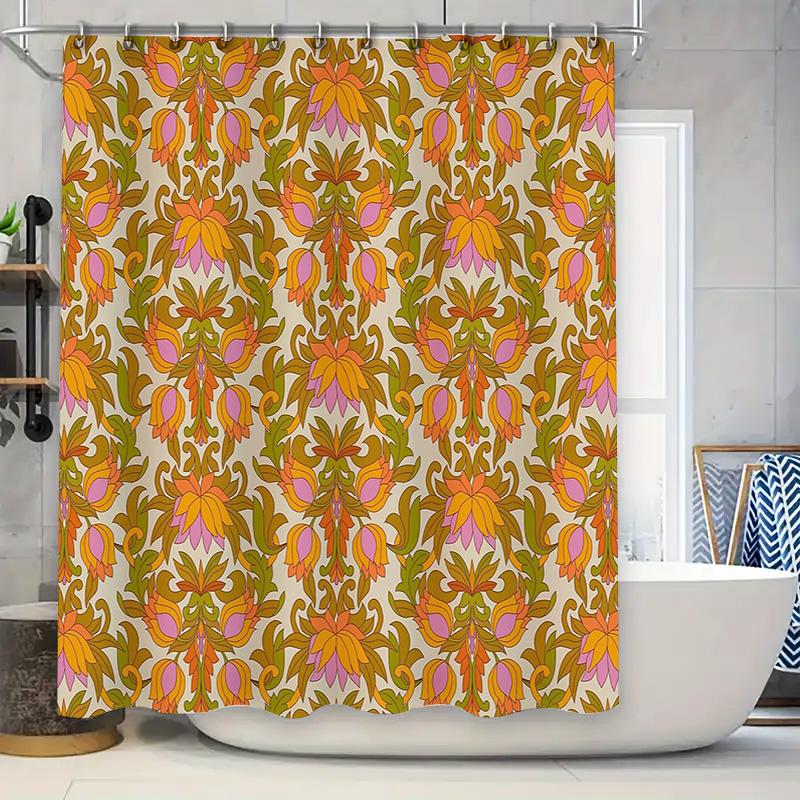 Floral Shower Curtain Vintage Botanical Pattern Bathroom Decor Waterproof Fabric Liner Set Modern Farmhouse Style Washable