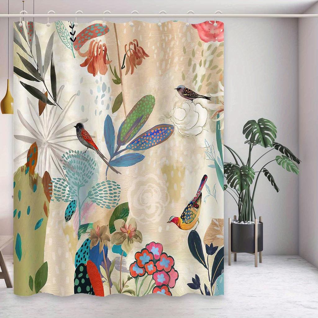 Elegant Vintage Floral & Bird Shower Curtain, Machine Washable, Artistic Bathroom Decor, Vibrant Plant & Flower Design