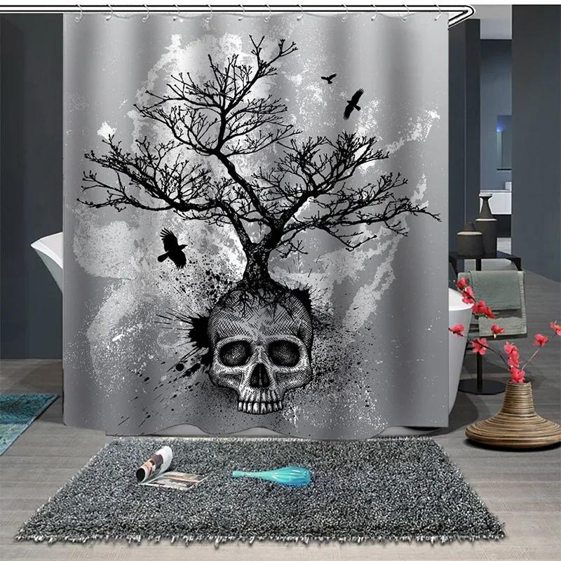 Anti-mold Shower Curtains Halloween Horror Skull Landscape Bathroom Blackout Curtains Fabric Waterproof Polyester Bath Curtain