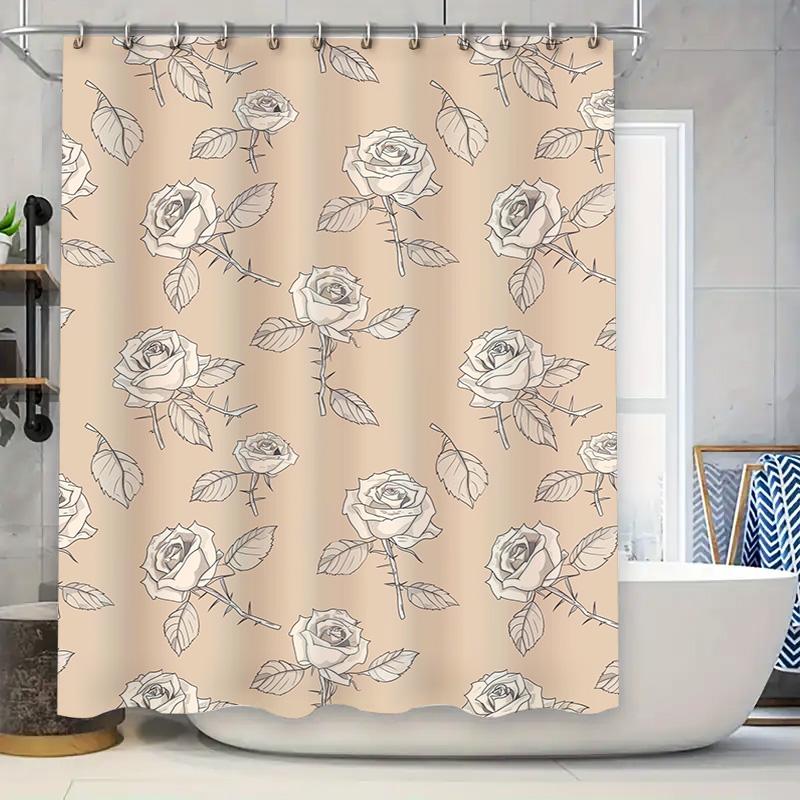 Modern Minimalist Bathroom Shower Curtain with Rose Flower Pattern, Perfect for a Spa-like Experience in Your Home Bathrooms Dec