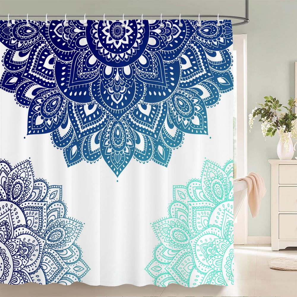 High Quality Indian Mandala Pattern Printed Fabric Shower Curtains Bohemian Bath Screen Waterproof Bathroom Decor with 12 Hooks