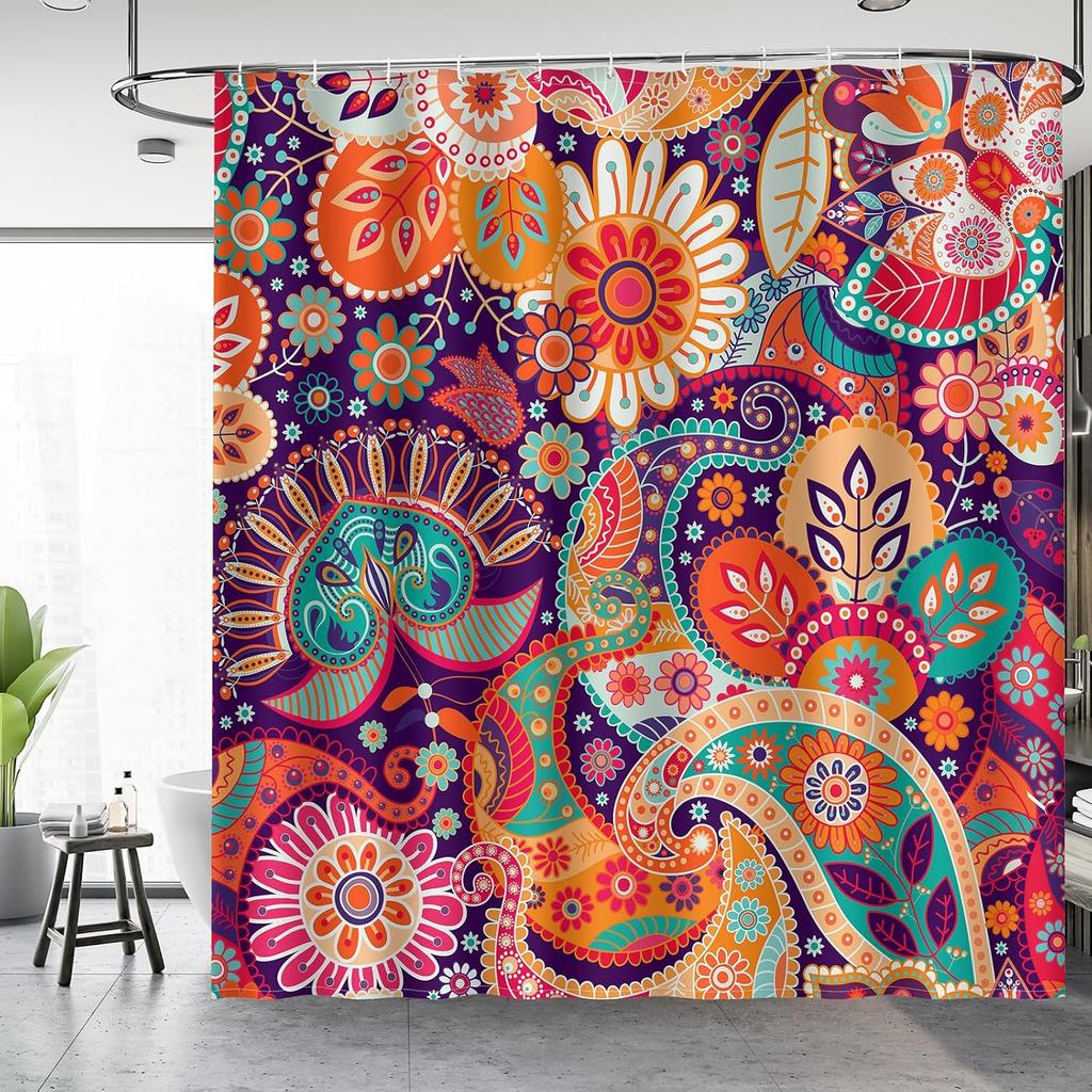 Mandala Indian Bohemian Colorful Flowers Bath Shower Curtain Set with 12 Hooks for Adults Kids Bathroom Decor Accessories