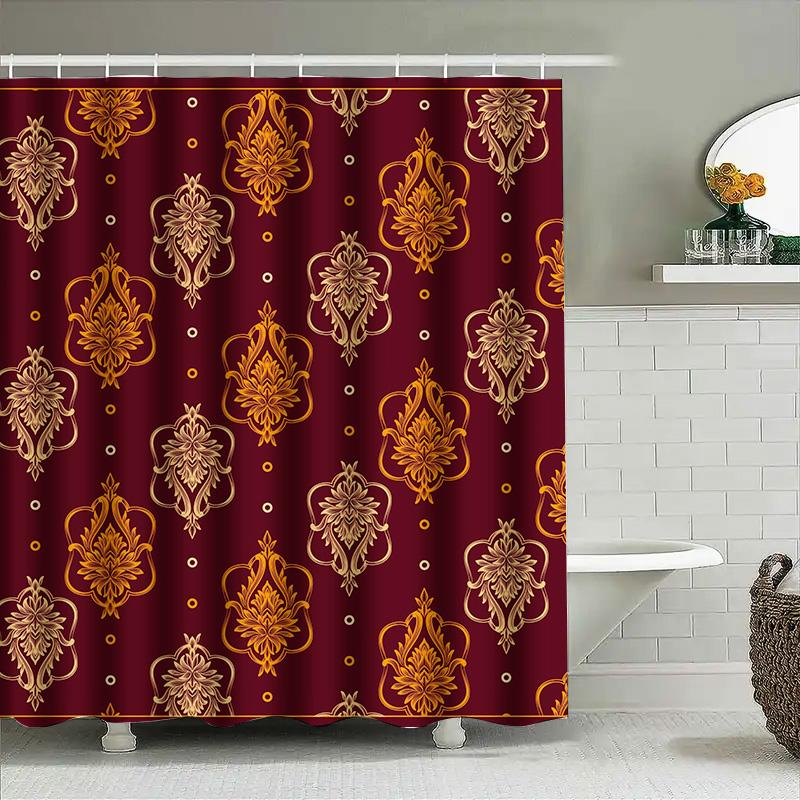 Luxurious Floral Bath Shower Curtain Decorative Waterproof Fabric Bathroom Decoration Privacy Indoor Home Decor in Red Gold Colo