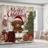 highland cattle Christmas Shower Curtain, Snowflake, Cute, Winter Bathroom Decorative Christmas Shower Curtain, with Hooks
