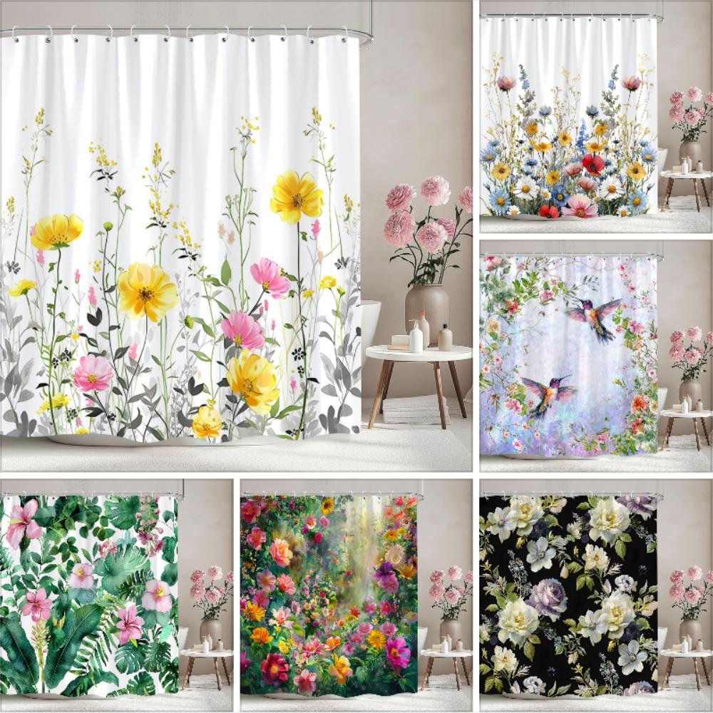 Beautiful Botanical Floral Shower Curtain Green Leaf Multicolour Flower Watercolour Style Art Home Shower Curtain Bathroom Decor