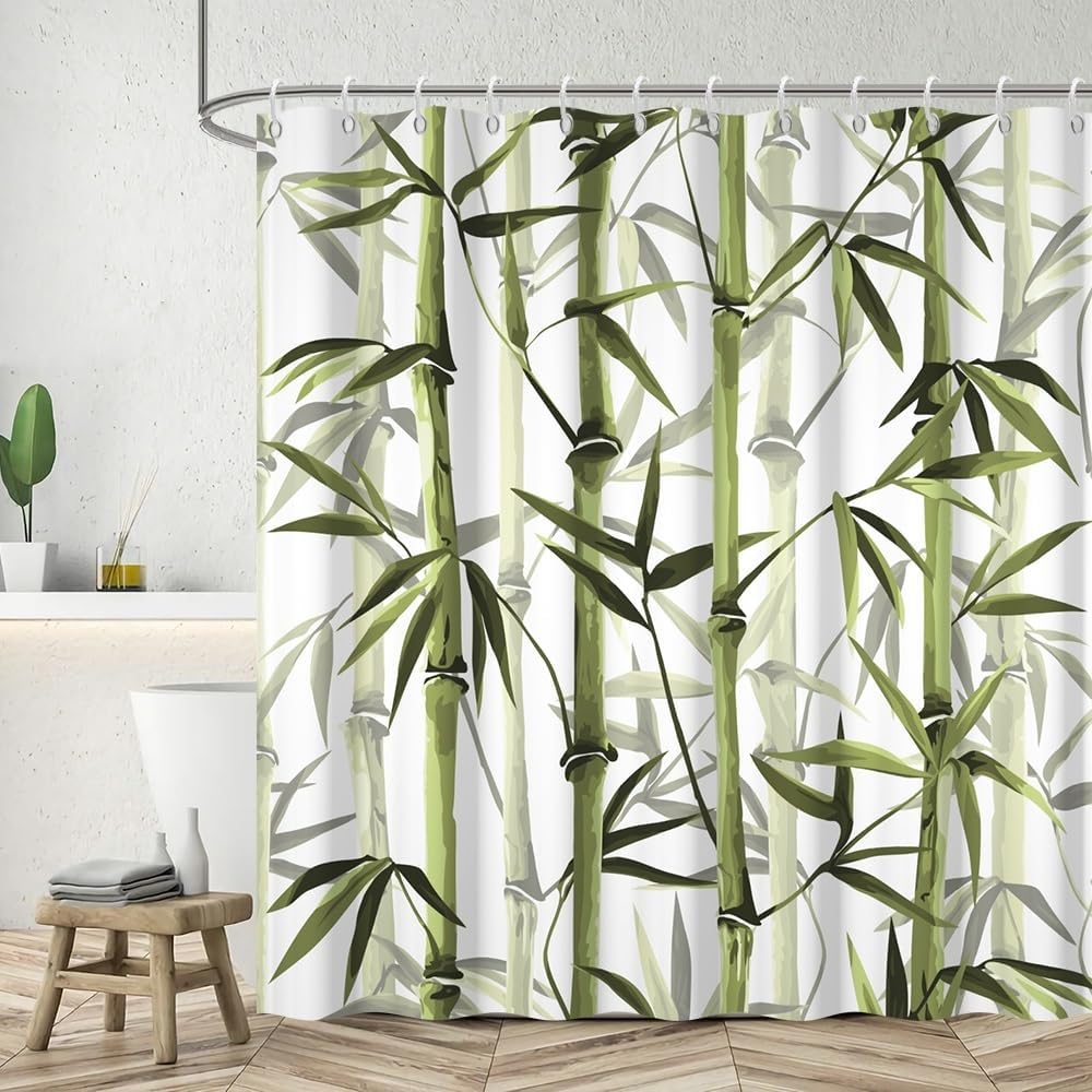 Green Bamboo Shower Curtain Bamboo 3D Printed Outdoor Bathroom Curtain Japanese Asian Zen Spa Spring Botanical Waterproof Fabric