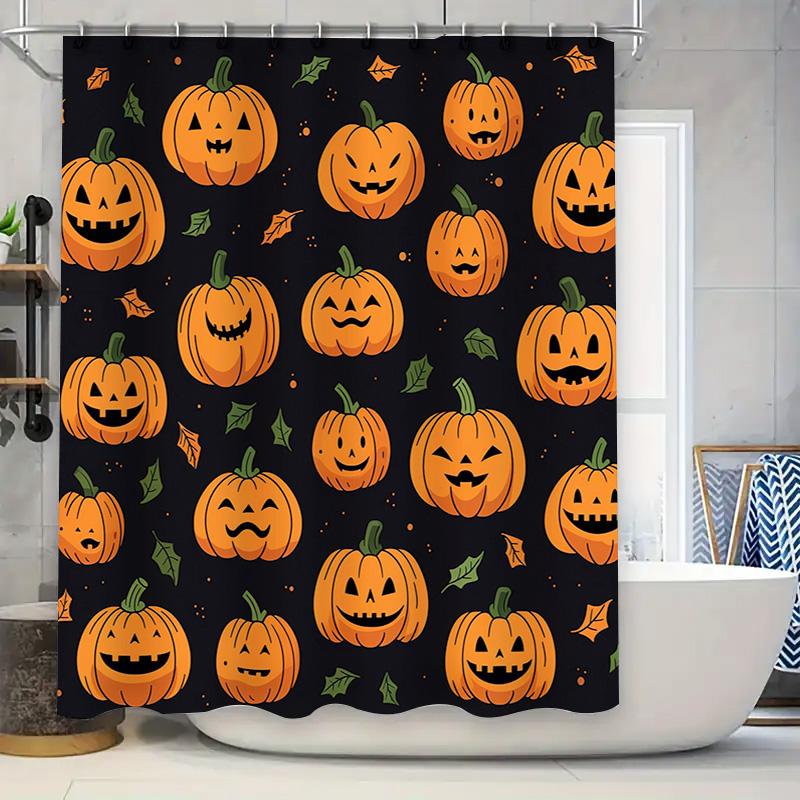 Halloween Pumpkin Print Shower Curtain Decorative Bathroom Fabric Waterproof Home Textile Supplies Orange Colorful Jack O Lanter
