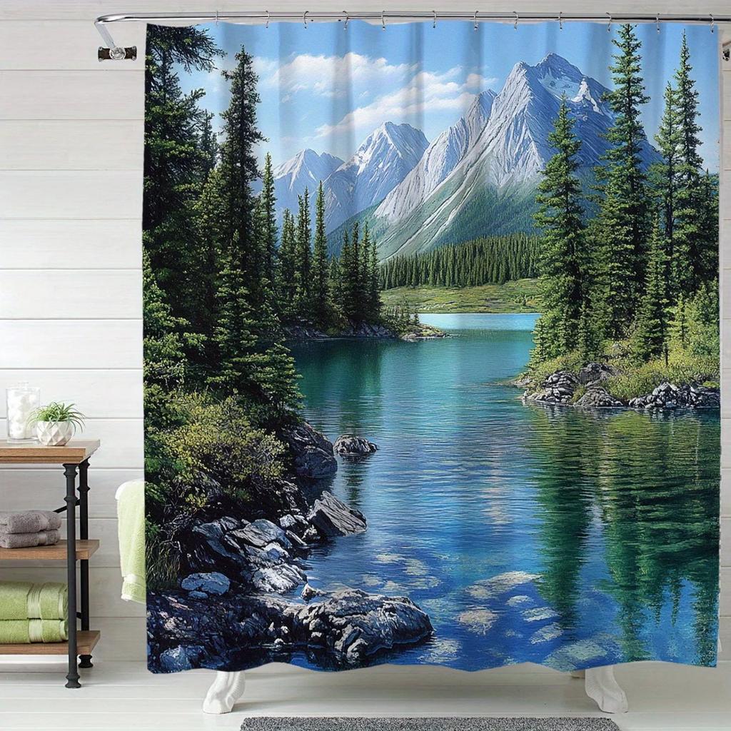 Cozy Snow Mountain Shower Curtain - Digital Print, Polyester, 12 Hooks, All-Season Home Decor