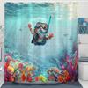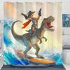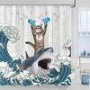 Funny Cat Shower Curtain Set Great Wave Art Style Relaxing Feline Waterproof Bathroom Shower Curtain Japanese Scene Home