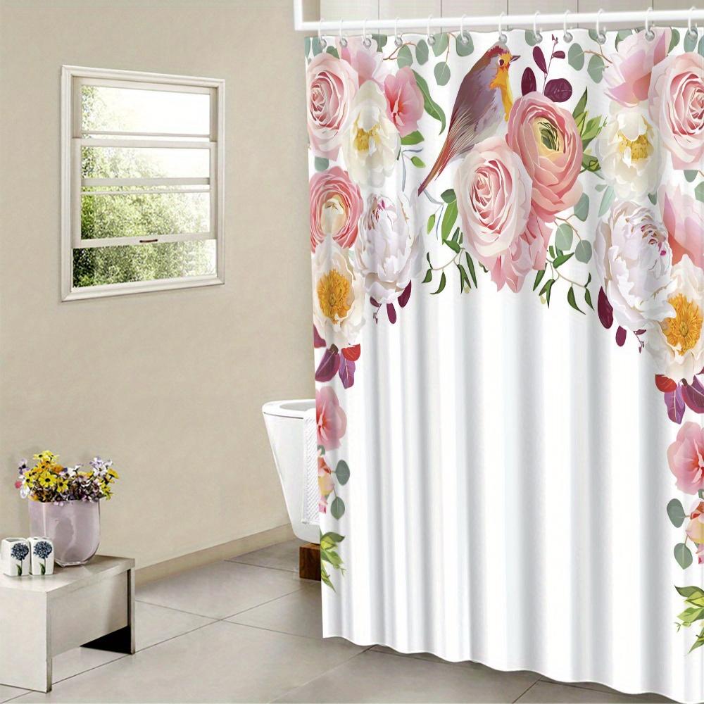 Vibrant Floral & Bird Shower Curtain - Polyester, Machine Washable, 12 Hooks, Elegant Bathroom Decor, Easy Install