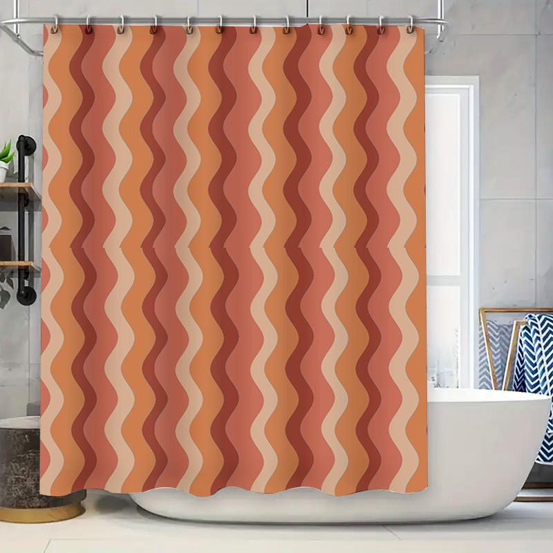 Retro Shower Curtain Wave Pattern Decorative Bath Liner for Modern Bathroom