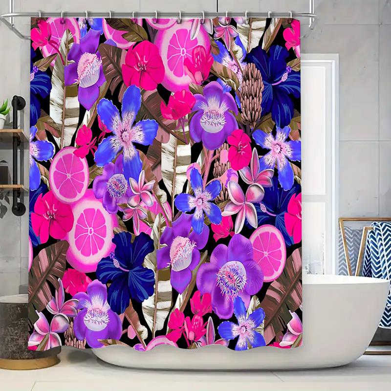 Floral Bathroom Curtain Botanical Shower Curtain Tropical Flowers Nature Decor Modern Farmhouse Home Decor Artistic Pattern Wall