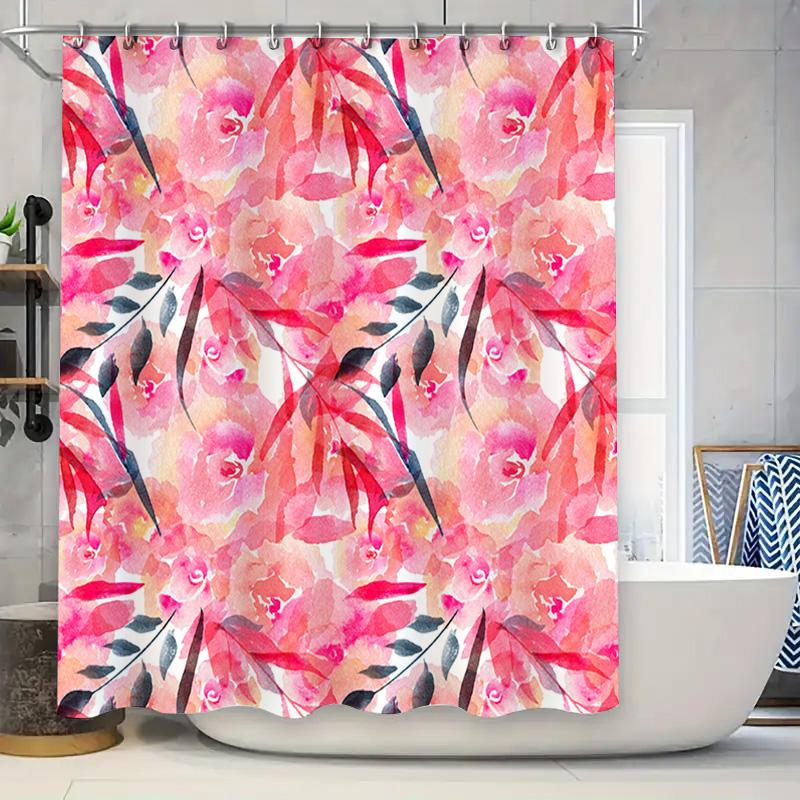 Watercolor Floral Shower Curtain Pink Black Print Modern Home Decor Bathroom Set for Bathtub Made with High-Quality Fabric