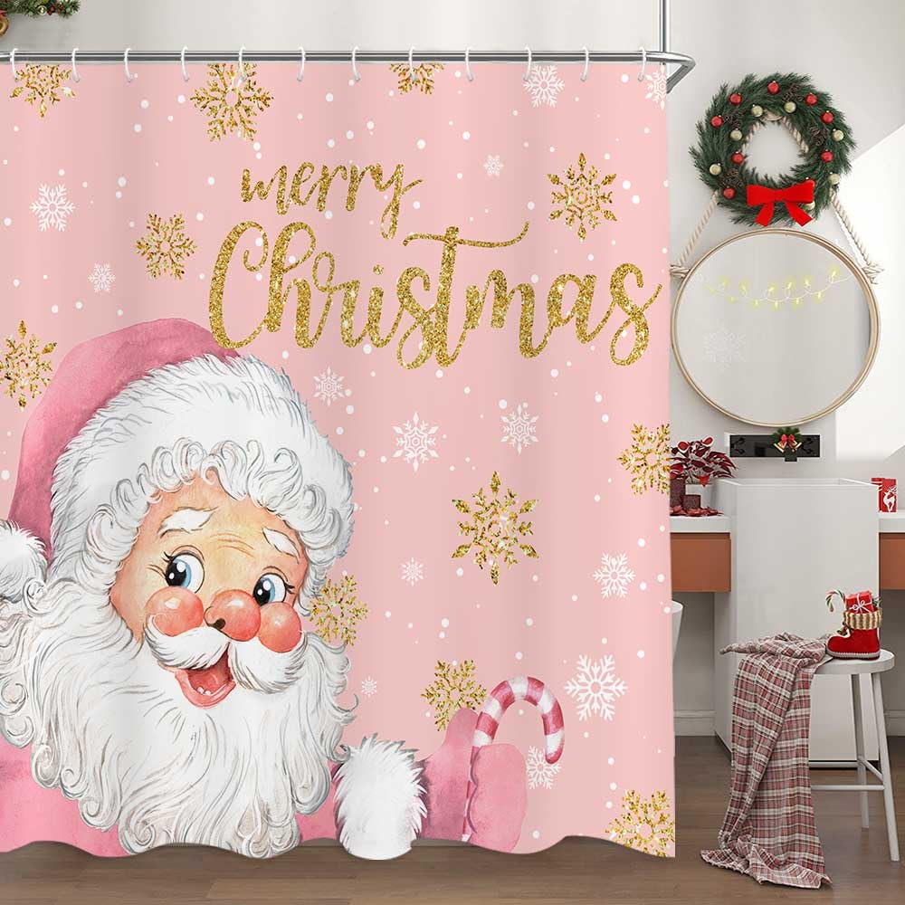 Christmas Santa Claus Shower Curtain Merry Christmas Shower Curtain Washable Fabric Shower Curtain Funny Winter Bathroom Decor