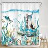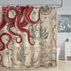 וילונות מקלחת מצחיקים תמנון חיית ים בתולת ים סירת מפרש מפה ימית וינטג' וילון אמבטיה בד קישוט לאמבטיה עם ווים