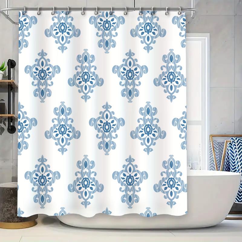 Blue Floral Shower Curtain Waterproof Bath Rug Decorative Home Decor Set Bathroom Shower Room Decorations for Kids Girls White B
