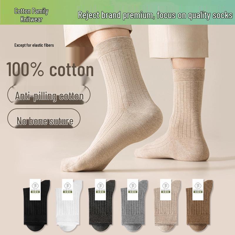 Men's Seamless Mid-Calf Socks - Pure Cotton, Antibacterial, Odor-Resistant, Sweat-Absorbent, Breathable for Spring/Fall/Winter Business Wear.