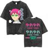 Summer Washed Vintage Anime The Disastrous Life of Saiki K Saiki Kusuo Men Retro Pure Cotton Printed Leisure T-shirt
