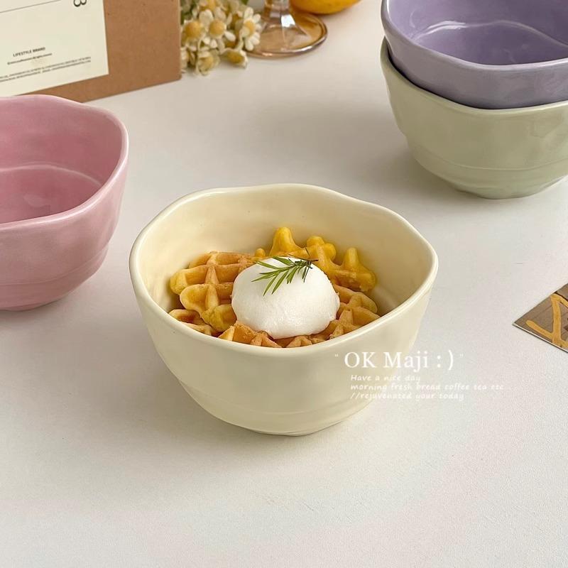 Ins Style Cute Ceramic Rice Bowl Cream Style Tableware High Value Fruit Salad Bowl Oat Yogurt Breakfast Bowl Simple