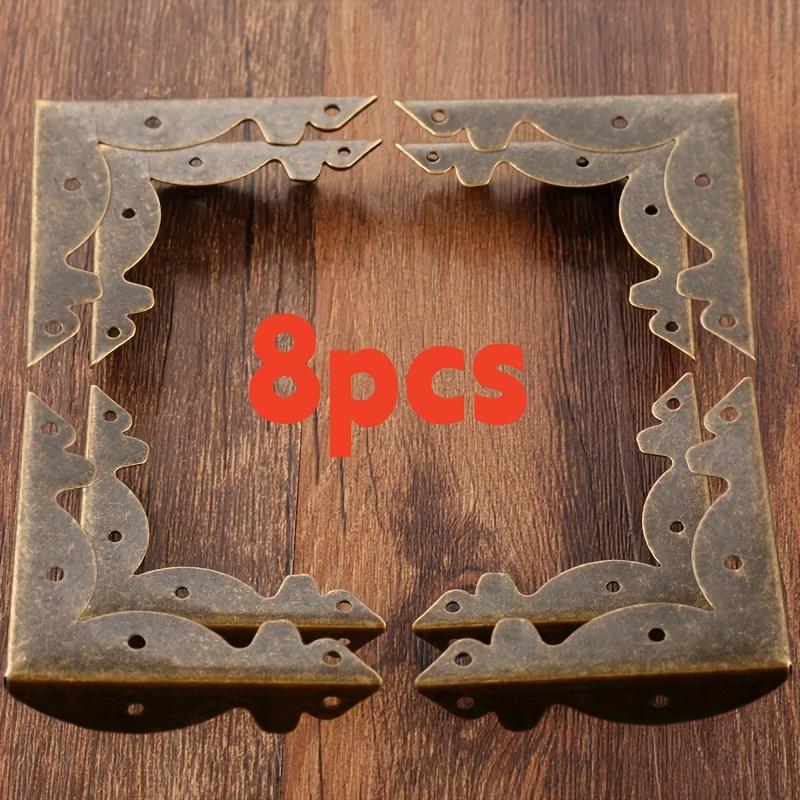 8pcs/set Iron Corners Antique Bronze Bracket 84mm Triangle Decor Scrapbook Album Jewelry Wood Box Protectors Table Leg w/Nails