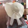 Spring Summer Pearls Strap Straw Hat French Style Women's Sun Hat Ins Folding Straw Hats Girls