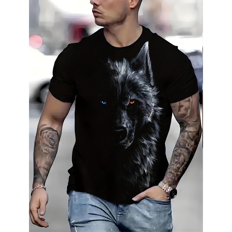 New Retro Style 3D Wolf Print Men's T-shirt Summer Daily Men's Casual T Shirt Outdoor Street Men Fashion Street Short Sleeve Tee